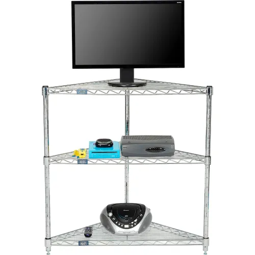Nexel® 3 Shelf, Chrome Corner Wire Shelving Unit, 32"W x 24"D x 34"H