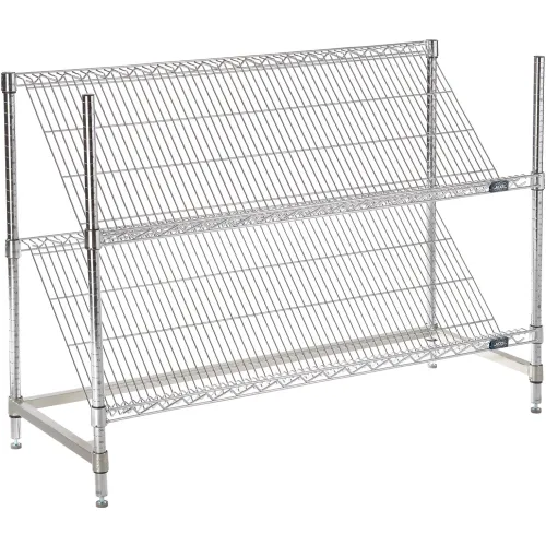 Nexel® 2 Shelf, Chrome Slant Wire Shelving Unit, Starter, 48"W x 18"D x 34"H