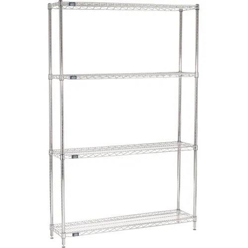 Nexel® 4 Shelf, Chrome Wire Shelving Unit, Starter, 48"W x 12"D x 86"H