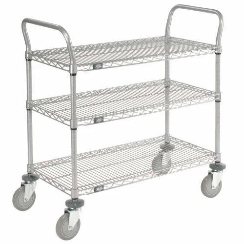 Nexel®, 3 Shelf, Utility Cart, Nexelate, 36"W x 24"Dx39"H, Poly Casters,4 Swivel