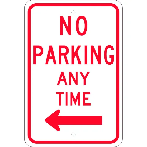 NMC TM015K Traffic Sign, No Parking Any Time With Double Arrow, 18" X 12", White