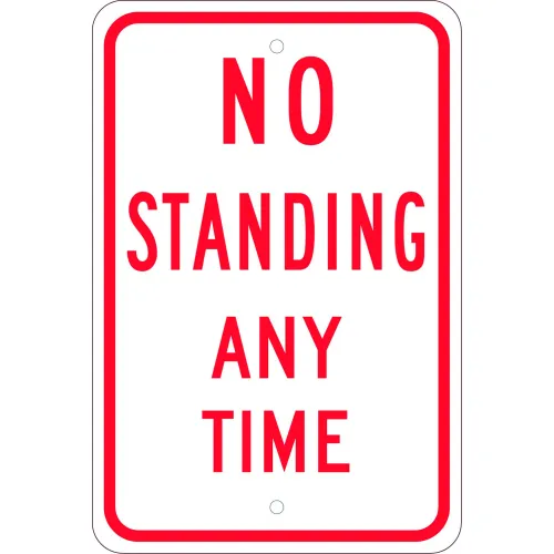 NMC TM098K Traffic Sign, No Standing Anytime, 18" X 12", White