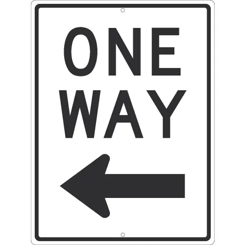 NMC TM510J Traffic Sign, One Way Arrow Left, 24" x 18", White