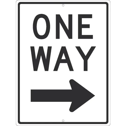 NMC TM511J Traffic Sign, One Way Arrow Right, 24" x 18", White