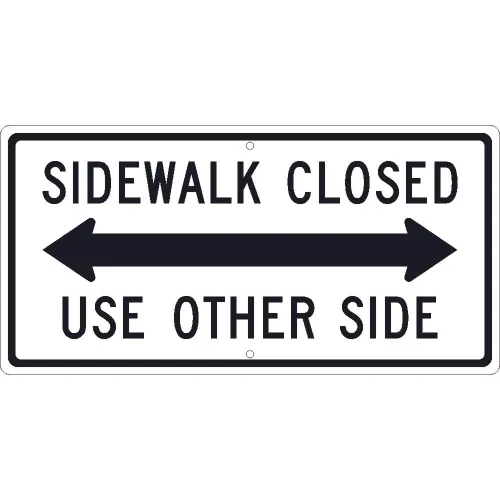 NMC TM512J Traffic Sign, Sidewalk Closed Use Other Side Sign, 12" X 24", White