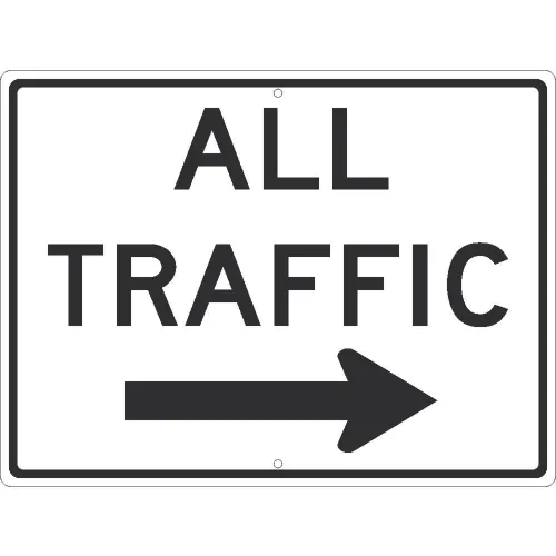 NMC TM536J Traffic Sign, All Traffic With Arrow Sign, 24" x 18", White
