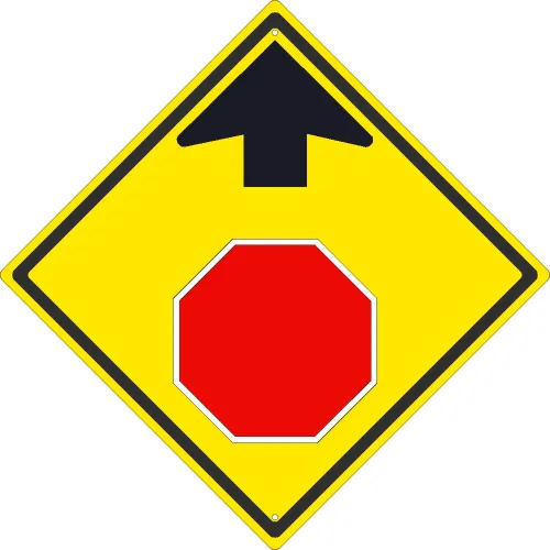NMC TM609K Traffic Sign, Stop Ahead With Arrow (Graphic), 24" x 24", Yellow