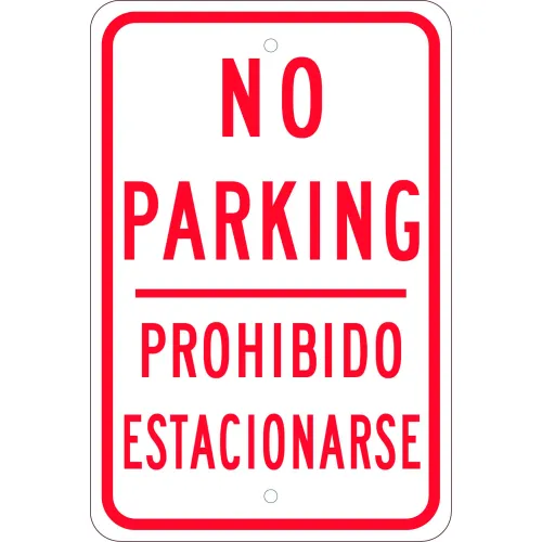 NMC TM98J Traffic Sign, No Parking Bi-Lingual, 18" X 12", White
