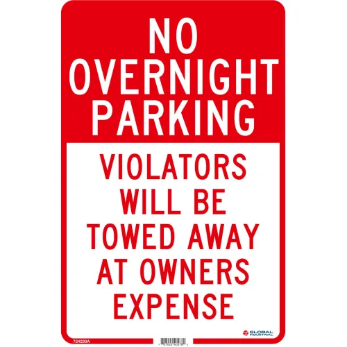 Global Industrial™ No Overnight Parking Violators Will Be Towed, 18x12, .040 Aluminum