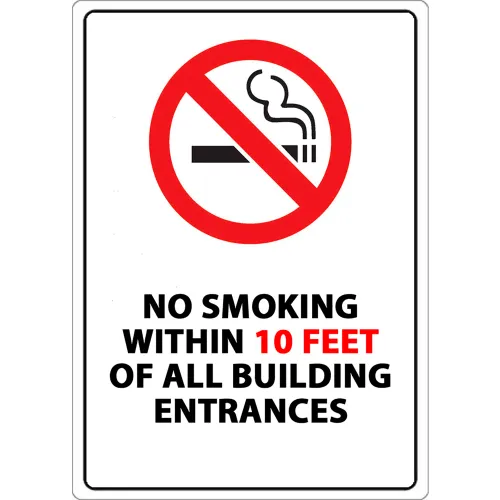 Zing No Smoking 10 Feet Label, 5"W x 7"H, Recycled Polystyrene Adhesive, Pack of 2