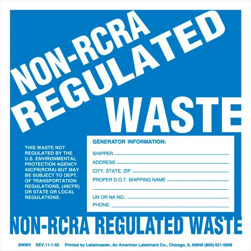 Non-RCRA Regulated Waste Label, Stock PVC free, Vinyl, 100/Pack