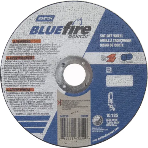 Norton 66252843210 BlueFire Right Angle Cut-Off Wheel 6" x 1/16" x 7/8" 36 Grit Alum. Oxide T1 - Pkg Qty 25