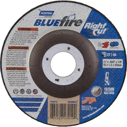Norton 66252843219 BlueFire Cutting Wheel 4-1/2" x 1/16" x 7/8" Zirconia Alumina / Aluminum Oxide - Pkg Qty 25