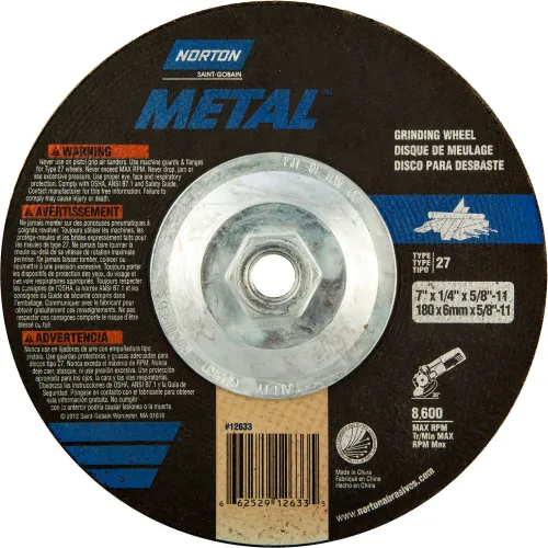 Norton 66252912633 Metal Grinding Wheel 7" x 1/4" x 5/8 - 11" 24 Grit Aluminum Oxide - Pkg Qty 10