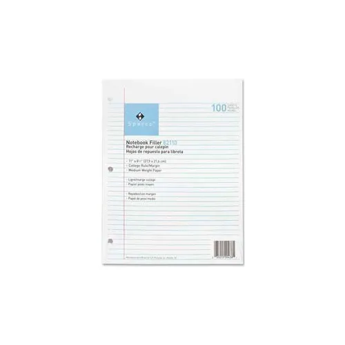 Sparco™ Notebook Filler Paper, 8-1/2" x 11", College Ruled, White, 100 Sheets/Pack