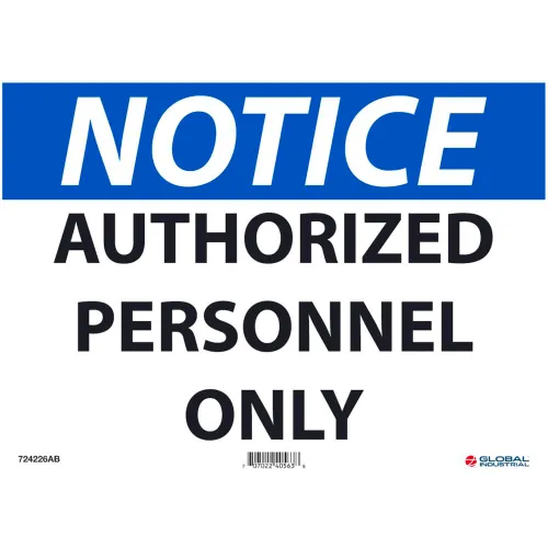 Global Industrial™ Notice Authorized Personnel Only, 10x14, Aluminum