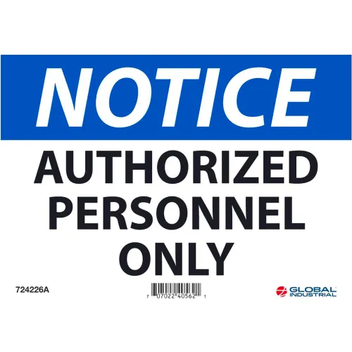 Global Industrial™ Notice Authorized Personnel Only, 7x10, Aluminum