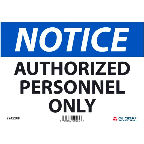 Global Industrial™ Notice Authorized Personnel Only, 7x10, Pressure Sensitive Vinyl