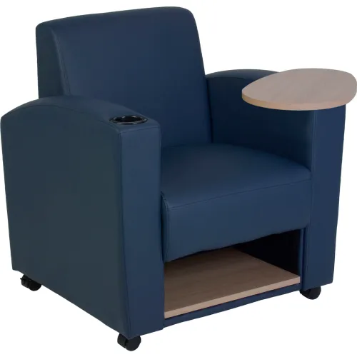 Regency Nova Tablet Arm Lounge Chair with Storage, 31"W x 29"D x 33"H, Navy Blue/Noble Oak