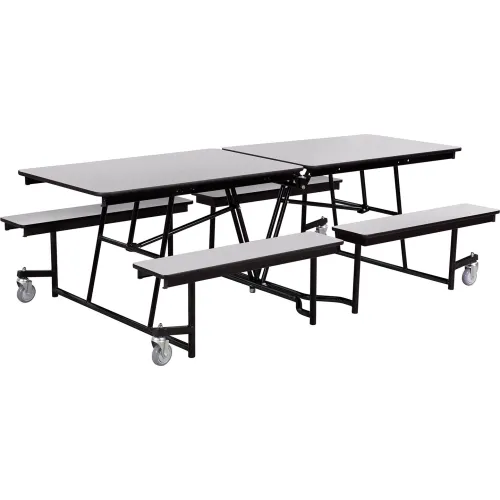 NPS® Mobile Cafeteria Table With Fixed Benches, 97"L x 56"W, Gray Top/Black Frame