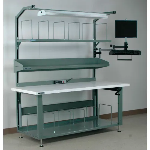 Stackbin No. 3 Hydraulic Adjustable Height Packing Workbench, Laminate Square Edge, 60"W x 30"D,Blue