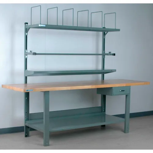 Stackbin No. 8 Adjustable Height Packing Workbench, Butcher Block Square Edge, 96"W x 36"D,Black