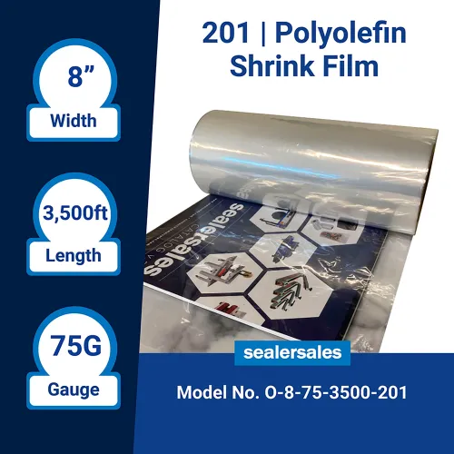 Sealer Sales O-201 General Purpose Polyolefin CF Shrink Film, 75 Ga., 8"W x 3500'L, Clear, 1 Roll