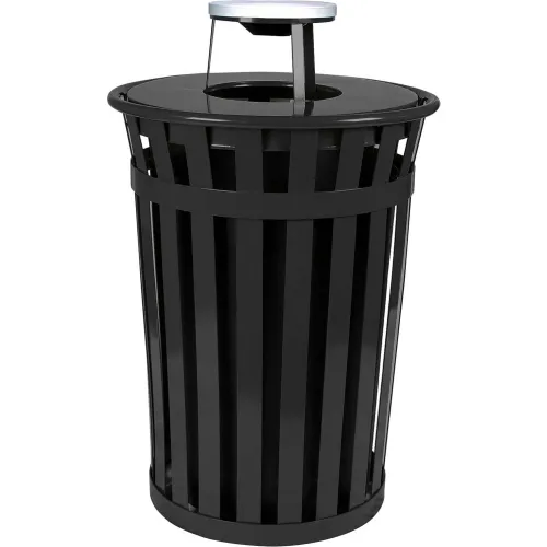 Witt Industries Outdoor Slatted Steel Trash Can With Ash Top, 36 Gallon, Black