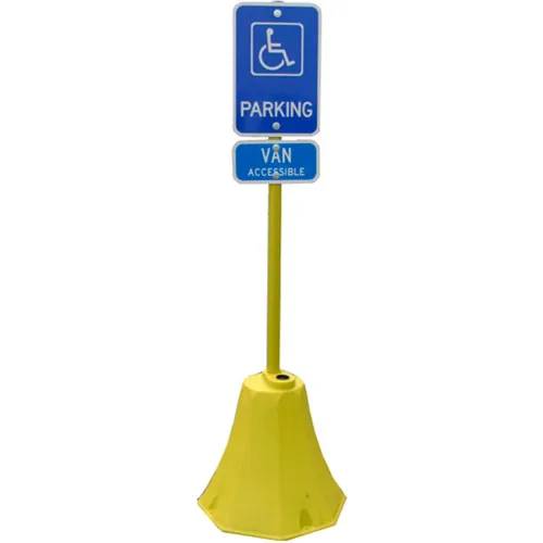 Ideal Shield® Octagon Sign Base with 98"H Post, Yellow, 8"W x 20"H Base