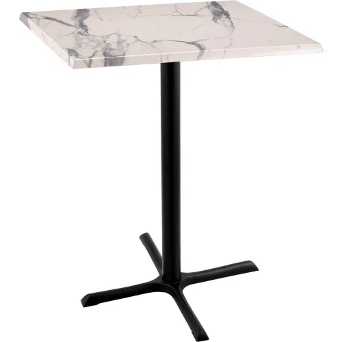 Holland Bar Stool OD211 Enduro Outdoor Table, X-Base, 30"W x 30"D x 42"H, White Marble Top