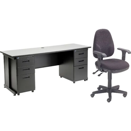 Interion® Office Desk and Fabric Chair Bundle with 3 Drawer Pedestals - 72" x 24" - Gray