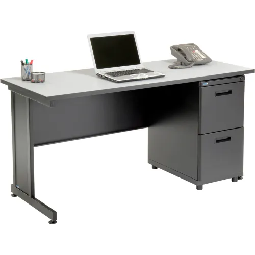 Interion® Office Desk with 2 Drawers - 60" x 24" - Gray
