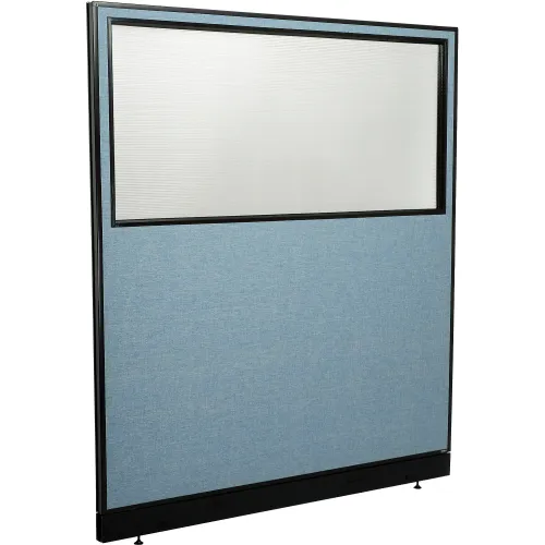 Interion® Office Partition Panel with Partial Window & Raceway, 60-1/4"W x 64"H, Blue