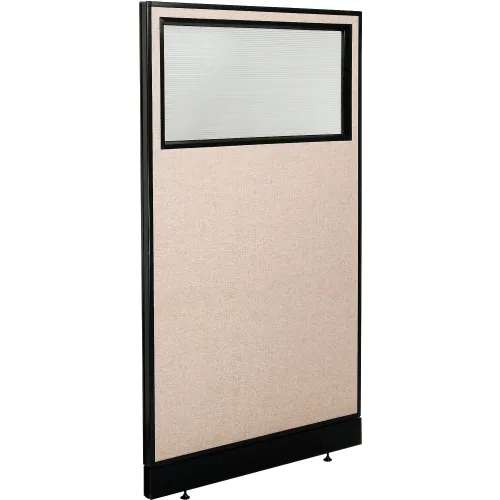 Interion® Office Partition Panel with Partial Window & Raceway, 36-1/4"W x 64"H, Tan
