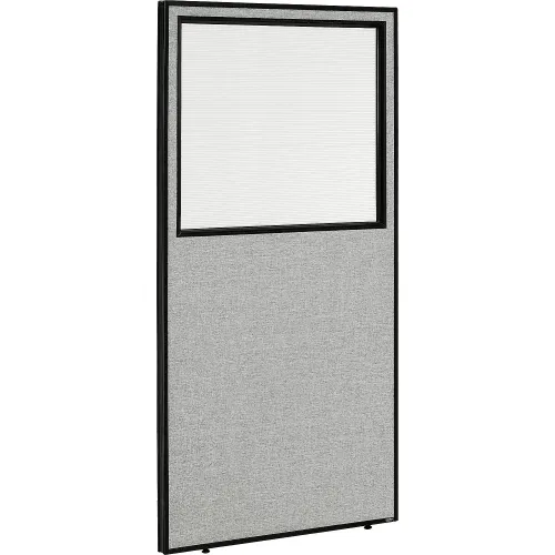Interion® Office Partition Panel with Partial Window, 36-1/4"W x 72"H, Gray