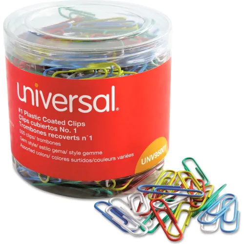 Universal® One Paper Clips, Vinyl Coated Wire, No. 1, Assorted Colors, 500/Pack