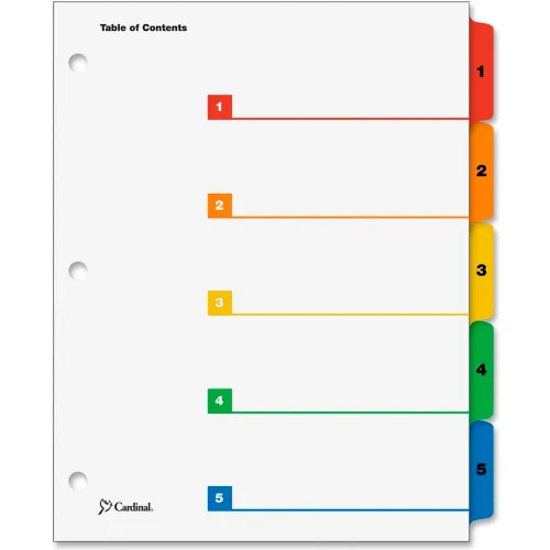 Cardinal OneStep Printable T.O.C. Divider, 1 to 5, 9"x11", 5 Tabs, White/Multicolor