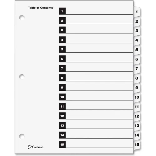 Cardinal OneStep Printable T.O.C. Divider, Printed 1, 15, 9"x11", 15 Tabs, White/White