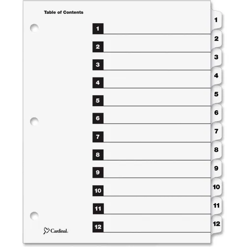 Cardinal OneStep Printable T.O.C. Divider, Printed 1 to 12, 9"x11", 12 Tabs, White/White