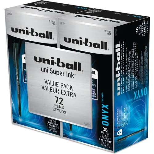 uni-ball® ONYX Rollerball Pen, 0.7 mm, Fine, Blue Ink, 72/PK
