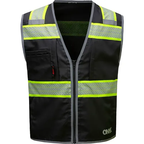 GSS Onyx Standard Safety Vest w/ Lime Contrasting Trim, LG, Black