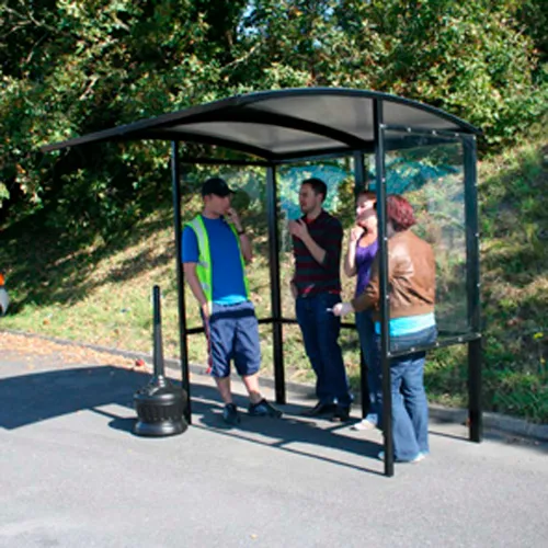 No Butts Open Front Smoking Shelter SR1604-BLK - Half Side Panels - 7'W x 7'D x 7'11"H Clear Roof