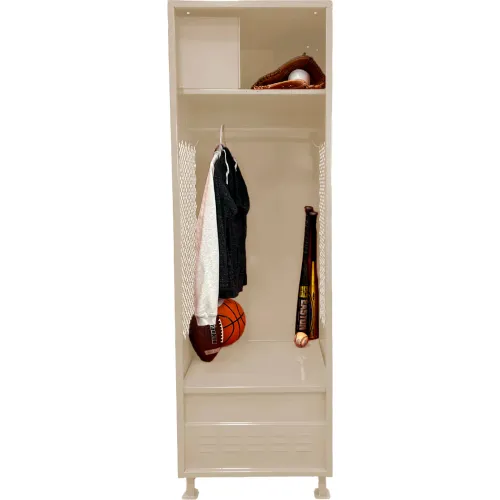 Global Industrial Open Gear Locker w/ Top Compartment, Foot Locker & Legs, 24"W x 24"D x 76"H, Putty