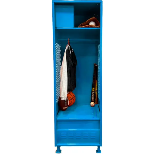 Global Industrial Open Gear Locker w/ Top Compt., Foot Locker & Legs, 24"W x 18"D x 76"H, Light Blue
