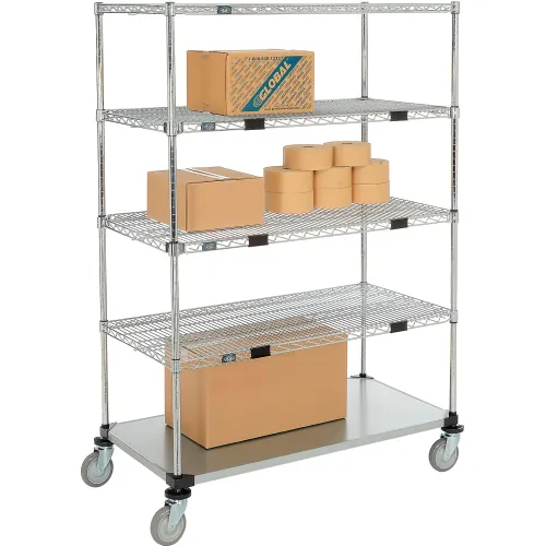 Nexel® 5 Shelf Truck, Chrome, 48"W x 24"D x 69"H, Polyurethane Stem Casters, 4 Swivel