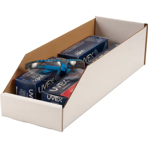 Global Industrial Open Top Corrugated Bin Box, 6"W x 18"L x 4-1/2"H, White - Pkg Qty 50