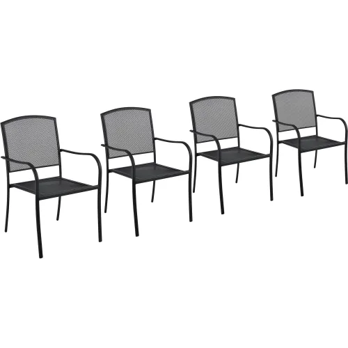 Global Industrial Outdoor Café Stacking Armchair, Steel Mesh, Black, 4 Pack