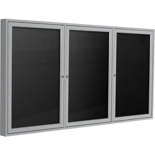 Ghent Enclosed Letter Board - Outdoor / Indoor - 3 Door - Black Flannel w/Silver Frame - 36" x 72"