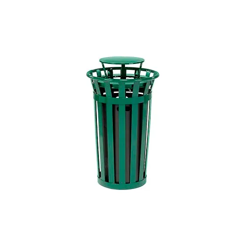 Global Industrial Outdoor Slatted Steel Trash Can With Rain Bonnet Lid, 24 Gallon, Green