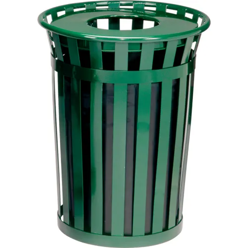 Global Industrial Outdoor Slatted Steel Trash Can With Flat Lid & Liner, 24 Gallon, Green